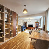 Parter - Living open - space amenajat cu zona de dining si acces catre terasa, bucatarie deschisa mobilata si utilata cu tot ce este necesar, baie de serviciu.