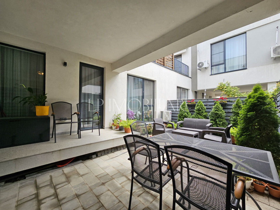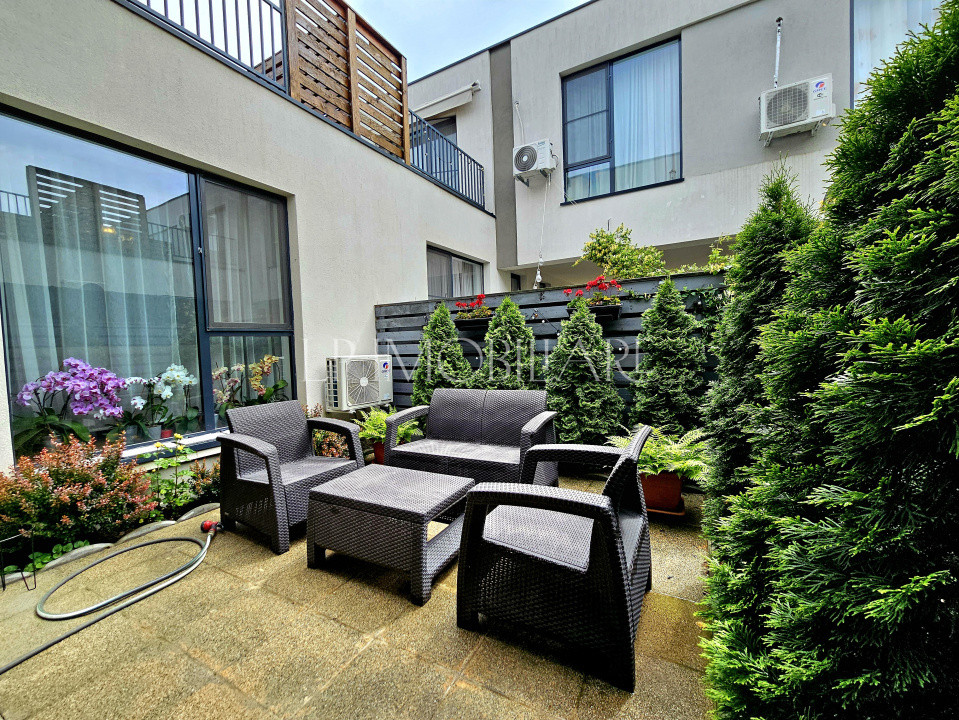 In curtea privata a imobilului veti descoperi o frumoasa gradina amenajata, zona de terasa acoperita si o zona de terasa descoperita.
